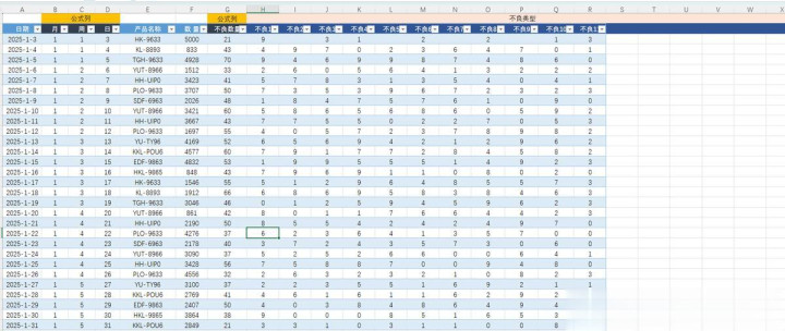5、数据源:说有数据通过数据源录入即可,其中公式列无需修改,不良类型名称可直接修改;也可在最后列依次添加即可;