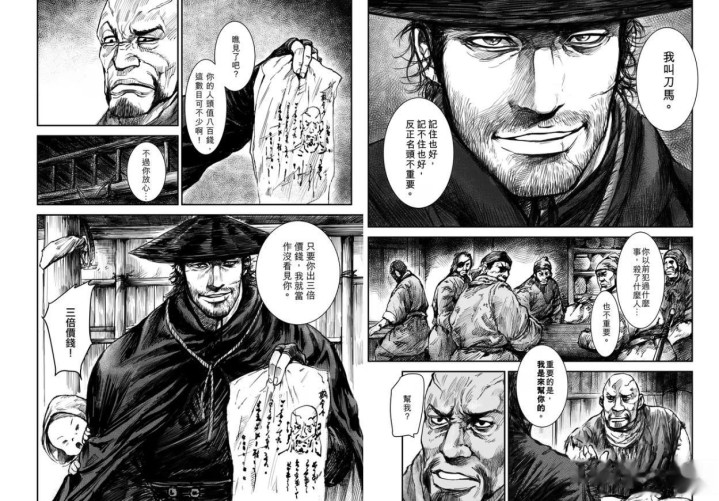 比如刀马刚出场的时辰,即是去找通缉犯响子帮的,刀马在漫画中是个话唠,这是作家的设定。刀马仅仅为了钱,可不是为了行侠仗义。