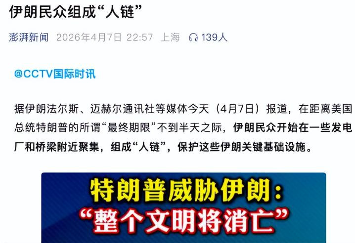 特朗普“最终期限”左近,伊朗寰球构成东说念主链保护电厂和桥梁!议长称”愿为国捐躯”斗鱼app注册登录,超1400万伊朗东说念主志愿为国献身——逐日经济新闻2026-04-07 23:30:21