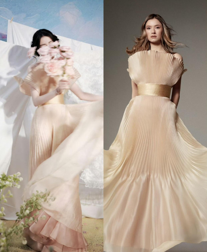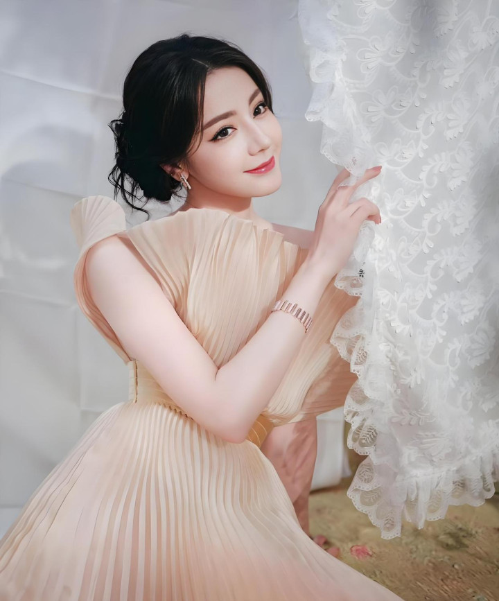说确切,阿谁画面月月反复看了好几遍——香槟色亮面叠褶裙,低盘发双丸子头,腰封一收,腰细得像掐出来的,通盘这个词东谈主便是从南法油画里溜出来的那种嗅觉。网友那句"无需修图的神女颜值"不是客套话,是确切被惊到了。