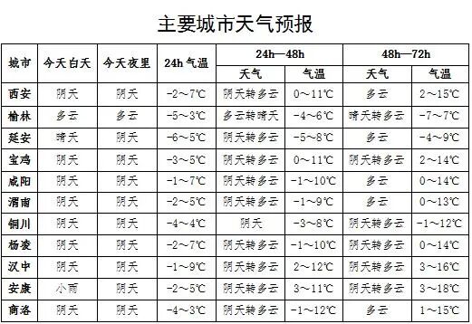 关中-12~4℃,最低印台玉华宫站-12.3℃,西安站3.2℃;