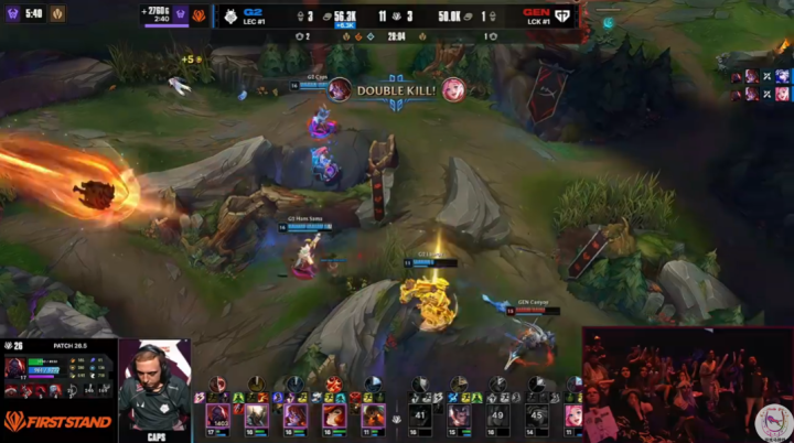 在此前爆冷淘汰了韩国二号种子BFX之后,G2今天对战韩国一号种子GenG,显著即使他们赢了一支韩国队,赛前大遍及东谈主还是不看好GenG不错赓续创造爆冷遗迹。因为GenG不仅在韩国联赛发扬很强,况且在本届时尚赛前2场Bo5中是全胜6-0,莫得输过任何一小局比赛。然则,诡异的事情就这么再次发生了,G2不仅赢了第一局,照旧碾压了一万多经济的暴打GenG局!
