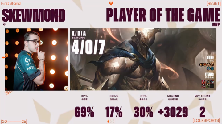G2上一届声威的打野选手Yike,亦然他们从大家赛里选出来的,其后单飞了。这两年他们又从大家赛里找到了这位Skewmond,他的成长速率之快,如实令东谈主热爱,也不错说是本届时尚赛G2发扬最强势的选手。G2不错连系2次发掘培养出欧洲第一打野,这亦然一种步调。
